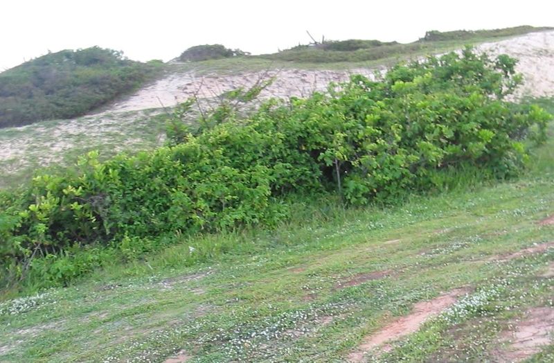próximo ao mar e coberto de plantas herbáceas características. Ou